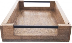 Objavte elegantný podnos z masívneho dreva mangovníka, ktorý vyniká prirodzenou kresbou aj dlhou životnosťou. Vďaka zvýšeným okrajom a stabilnej konštrukcii ľahko a bezpečne prenesiete kávu, čaj, zákusky či malé občerstvenie. Kovové rukoväte v čiernej farbe zabezpečujú pevný úchop a pohodlnú manipuláciu.