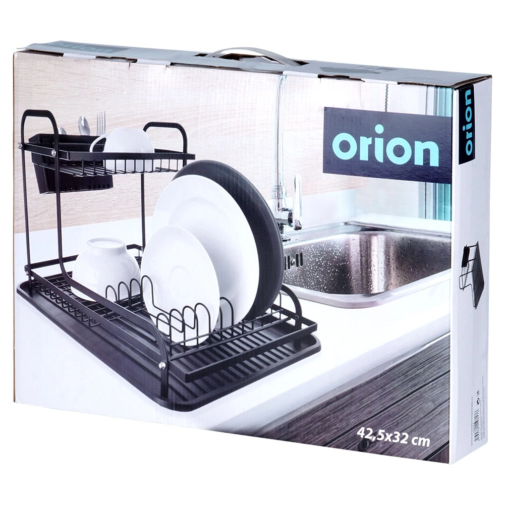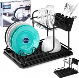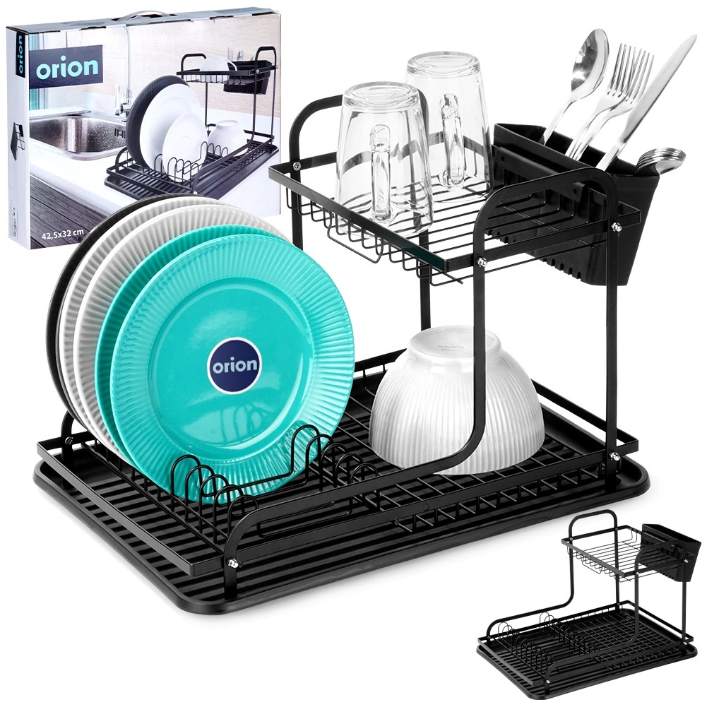 Praktický dvojposchodový odkvapkávač na riad RADKA v elegantnej čiernej farbe šetrí miesto na linke a urýchľuje sušenie. Ponúka vyberateľný príborník s dvoma komorami, odkvapkávací tác na odvod vody a organizované uloženie tanierov, pohárov a hrnčekov. Odolná kovová konštrukcia v matnom vyhotovení a jednoduchá údržba z neho robia ideálnu voľbu do moderných aj klasických kuchýň.