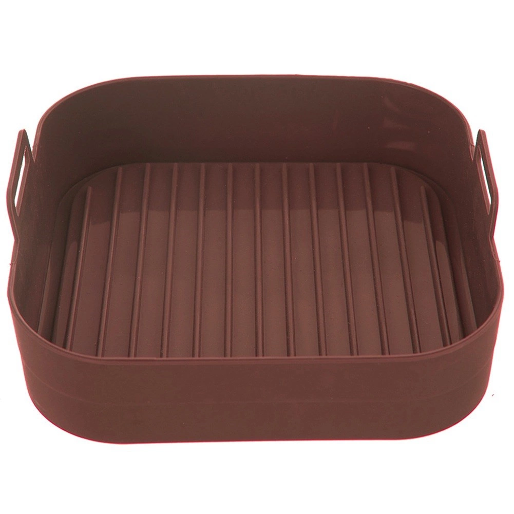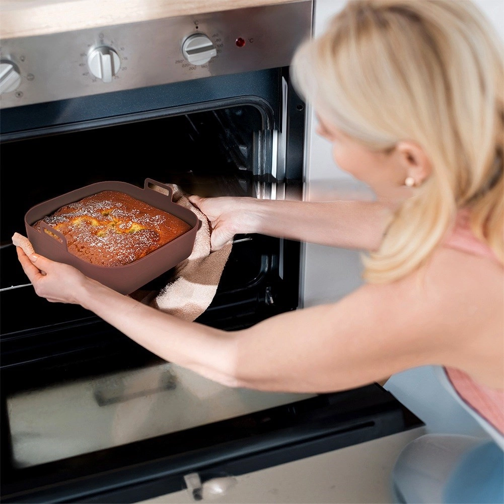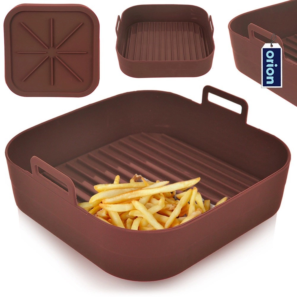 Tento štvorcový silikónový kôš do teplovzdušnej fritézy je ideálny na každodennú prípravu jedál bez zbytočného neporiadku. Nepriľnavý povrch zaisťuje jednoduché vyberanie pokrmov aj rýchle čistenie, zatiaľ čo zvýšené okraje a praktické úchyty zvyšujú bezpečnosť pri manipulácii.