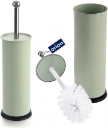Praktická a odolná sada na každodennú údržbu WC. Telo stojana je z kvalitného kovu v trendy pastelovo zelenej farbe, držiak kefky z nehrdzavejúcej ocele a husté biele štetiny účinne čistia aj horšie dostupné miesta. Uzavretý dizajn skrýva kefku a pomáha udržať kúpeľňu čistú a estetickú.