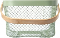 Tento dizajnový úložný košík spája odolnosť kovu a prírodnú eleganciu bambusového madla. Ažúrová (sieťovaná) konštrukcia zabezpečuje optimálnu cirkuláciu vzduchu, takže sa perfektne hodí na ovocie a zeleninu, rovnako ako na kozmetiku, uteráky či domáce doplnky.