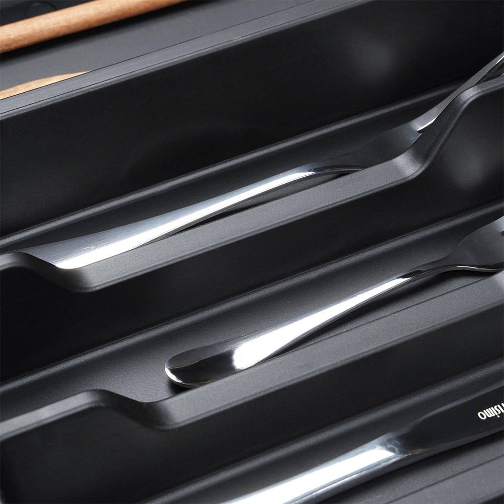 Premyslené, rôzne široké priehradky oddelia lyžice, vidličky, nože aj varešky, takže všetko rýchlo nájdete a udržíte poriadok každý deň.