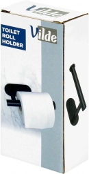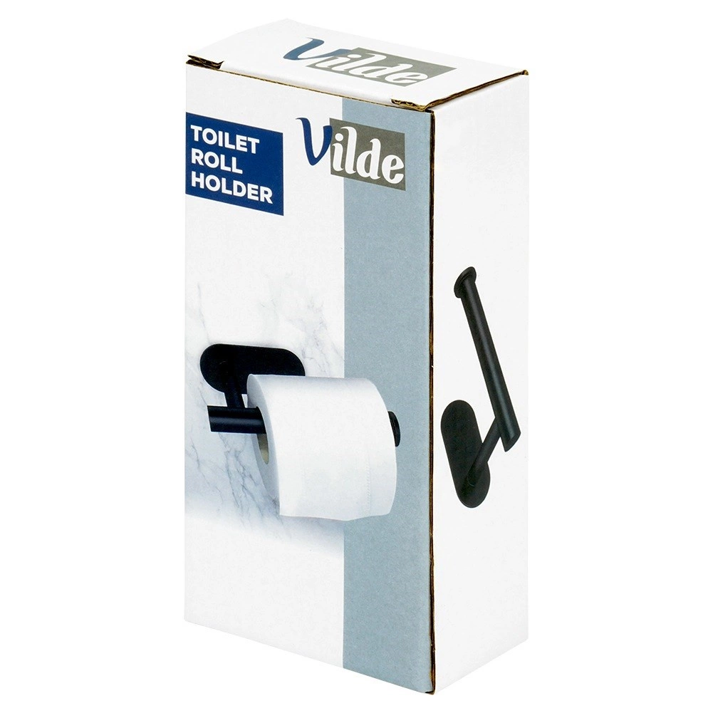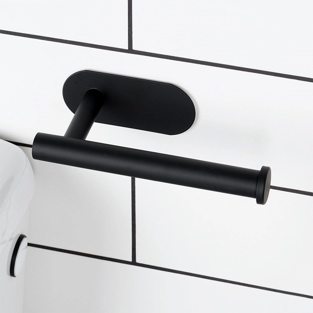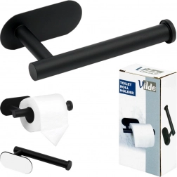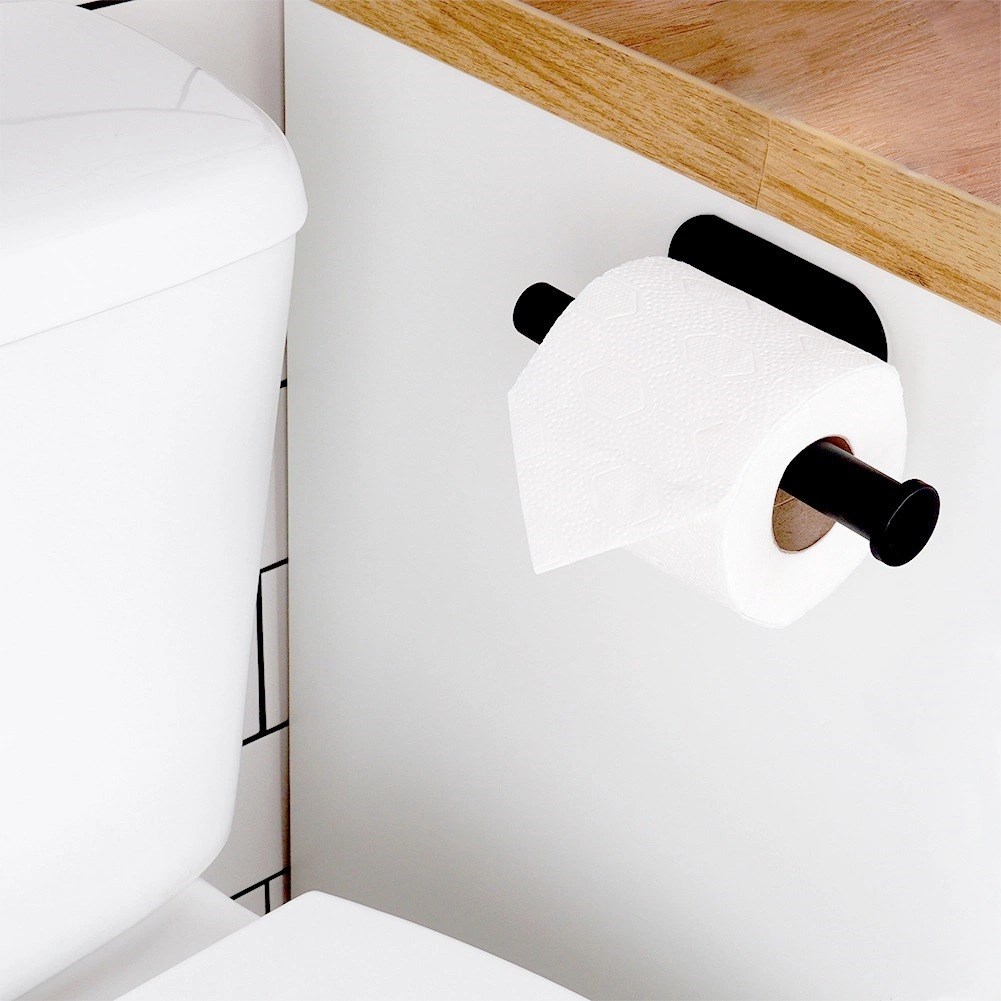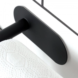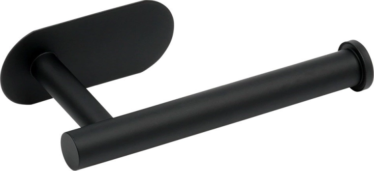 Štýlový držiak na toaletný papier z čierne lakovanej nehrdzavejúcej ocele zaistí ľahký prístup, rýchlu výmenu rolky a moderný vzhľad vašej kúpeľne. Rozmery 16,5 × 7,7 × 4,5 cm, odolné prevedenie a jednoduchá montáž bez vŕtania pomocou priložených obojstranných pások.