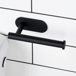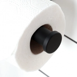 Minimalistický držiak toaletného papiera v matnej čiernej krásne doplní moderné aj klasické kúpeľne. Kvalitná nehrdzavejúca oceľ zaisťuje dlhú životnosť a odolnosť voči vlhkosti, zatiaľ čo otvorený koniec ramena umožňuje rýchlu a pohodlnú výmenu rolky.
