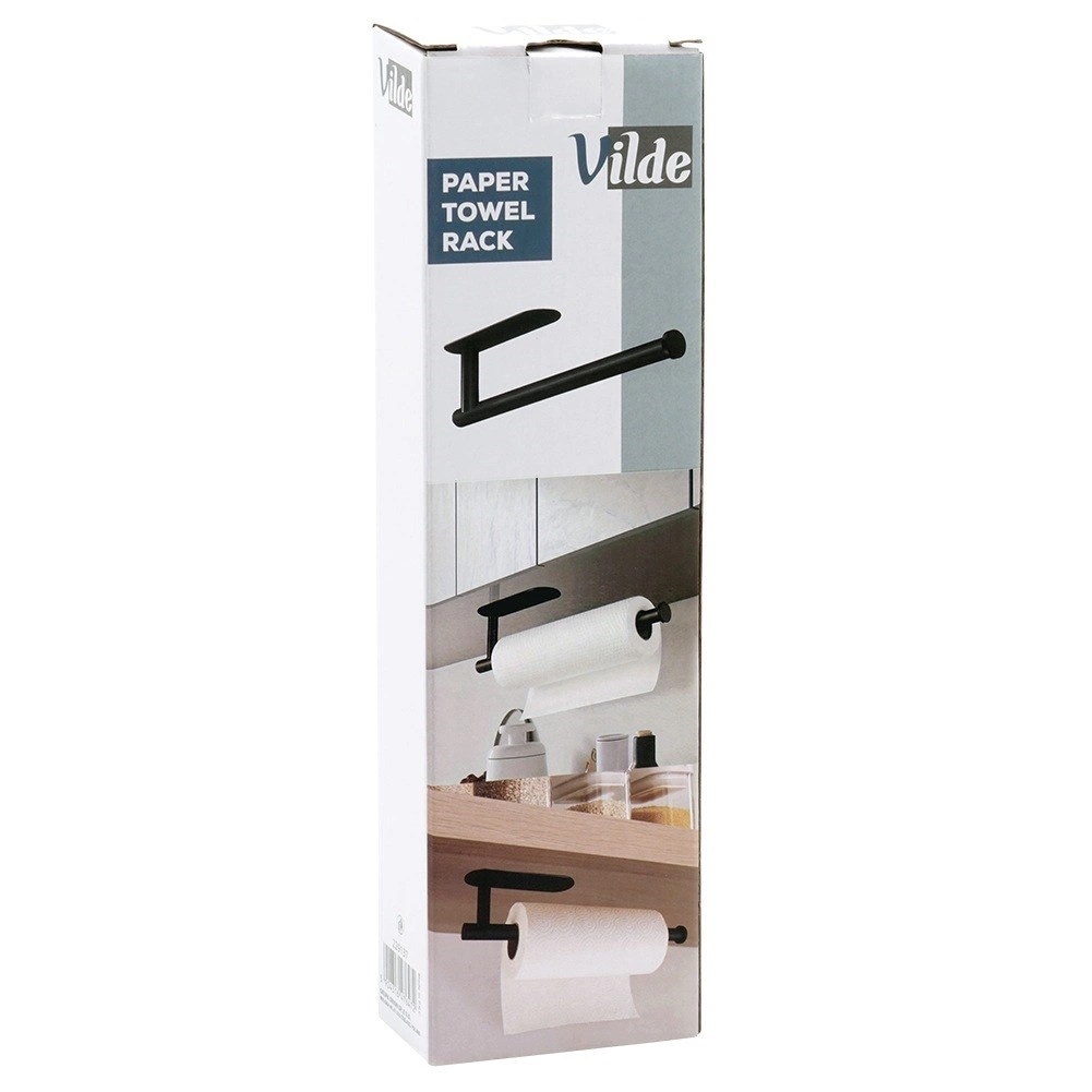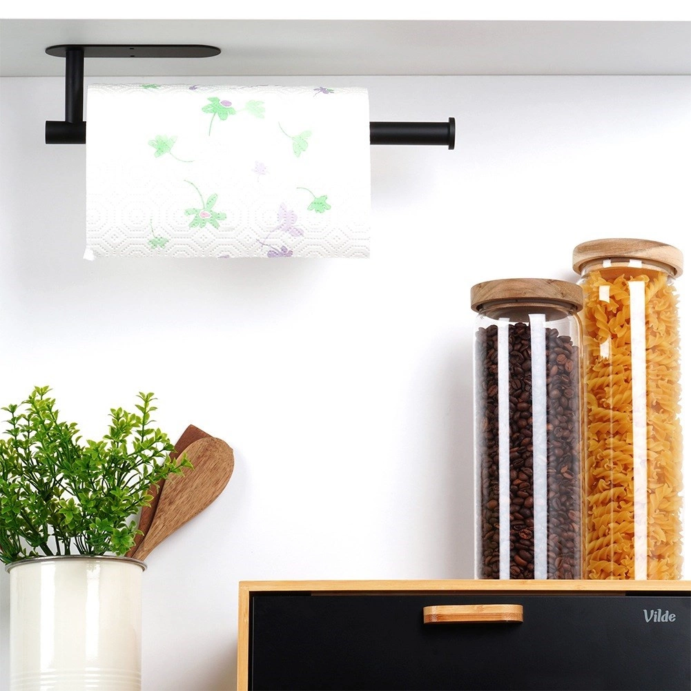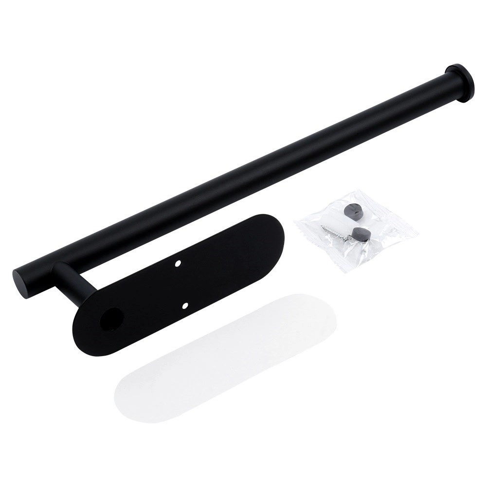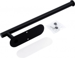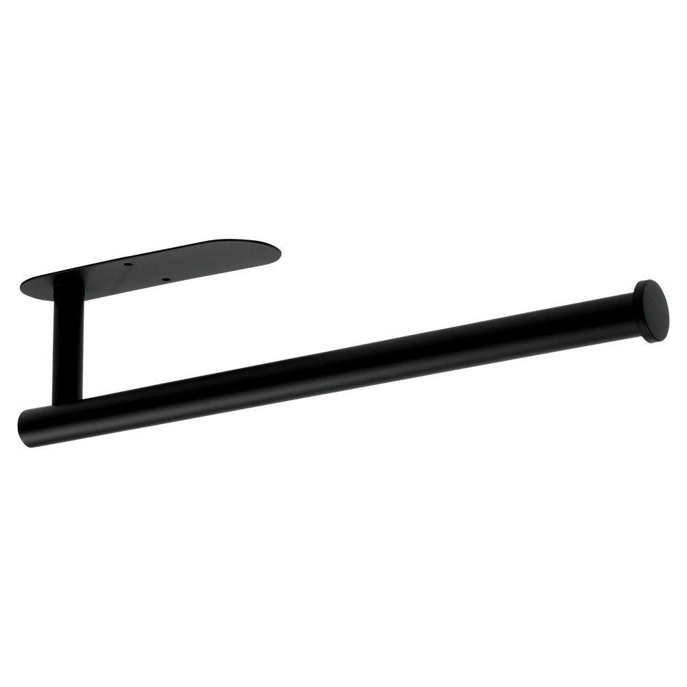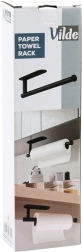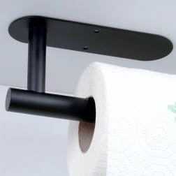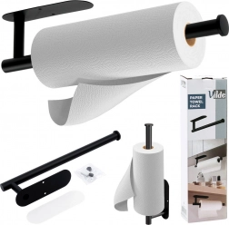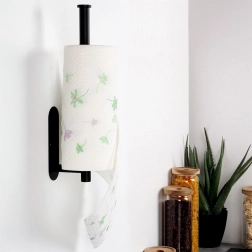 Praktický držiak na papierové utierky z odolnej nehrdzavejúcej ocele v čiernej farbe pre kuchyňu, kúpeľňu aj kanceláriu. Zabezpečuje rýchle odtrhnutie útržku, úsporu miesta a ľahký prístup počas varenia a upratovania. Súčasťou balenia je lepiaca páska aj skrutky pre voľbu bezvŕtacej alebo pevnej montáže.