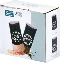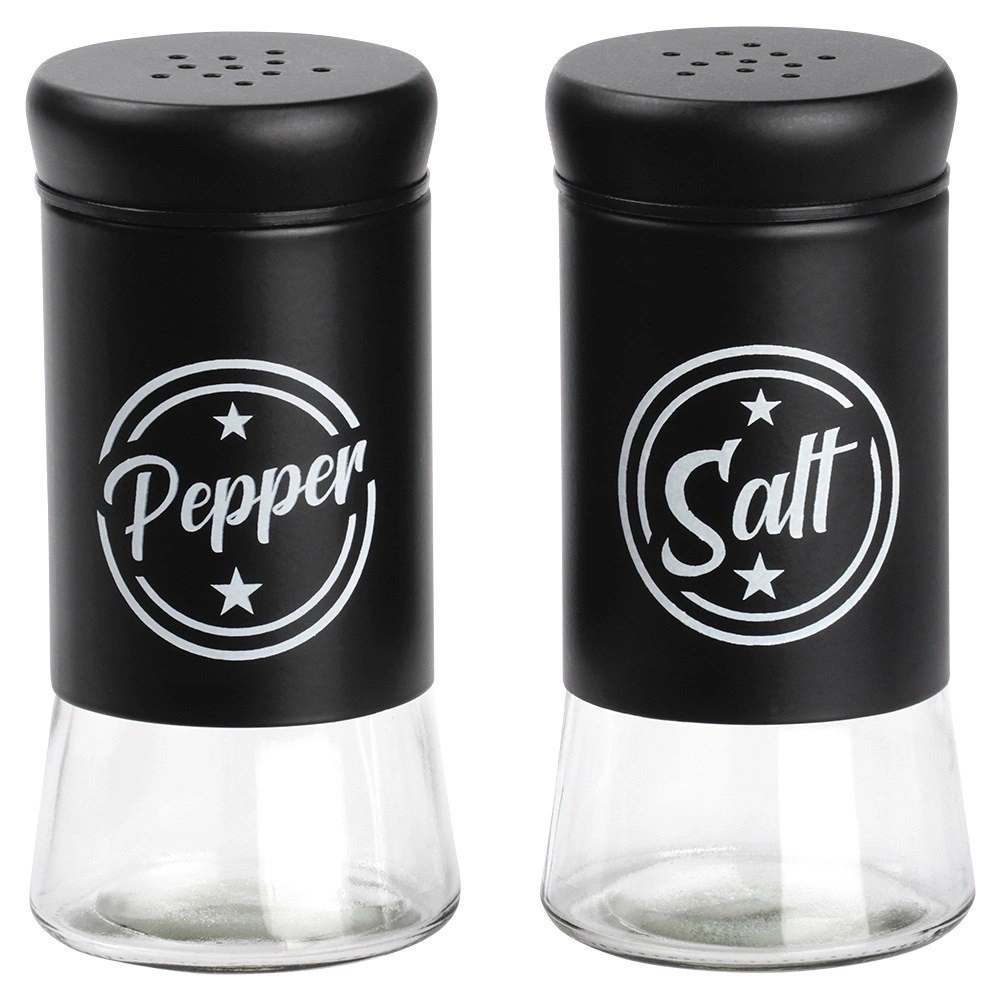 Sada obsahuje dve koreničky s objemom 140 ml s priehľadným skleneným dnom a matne čiernou kovovou hornou časťou. Praktické viečka s otvormi umožňujú rovnomerné sypanie a pomáhajú udržať čerstvosť a arómu korenia po dlhšiu dobu. Vďaka jasným nápisom Salt a Pepper vždy rýchlo spoznáte správnu koreničku.