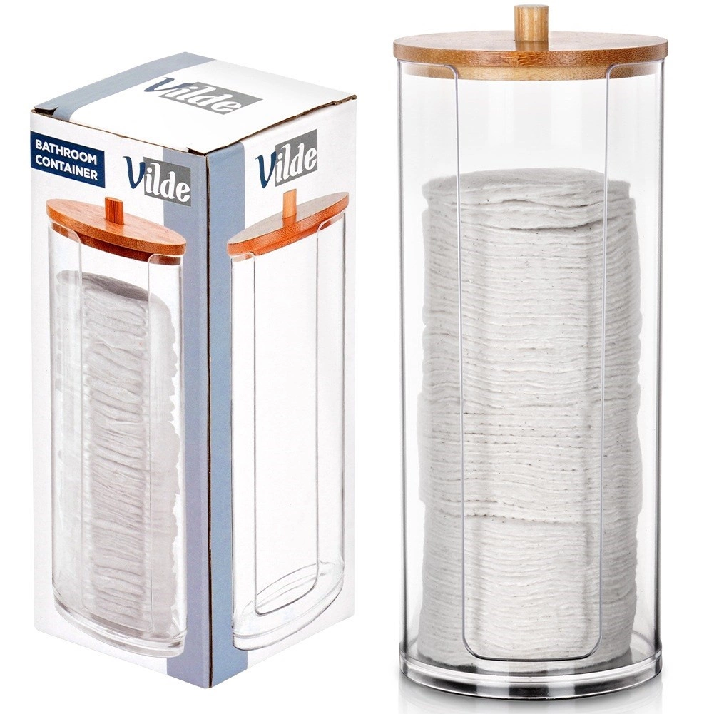 Štýlový a praktický organizér pre každodennú starostlivosť. Číry akryl poskytuje perfektný prehľad o obsahu, zatiaľ čo prírodné bambusové viečko s úchytom dodáva moderný vzhľad a chráni pred prachom. Ideálne riešenie na prehľadné a hygienické skladovanie vatových tampónov.