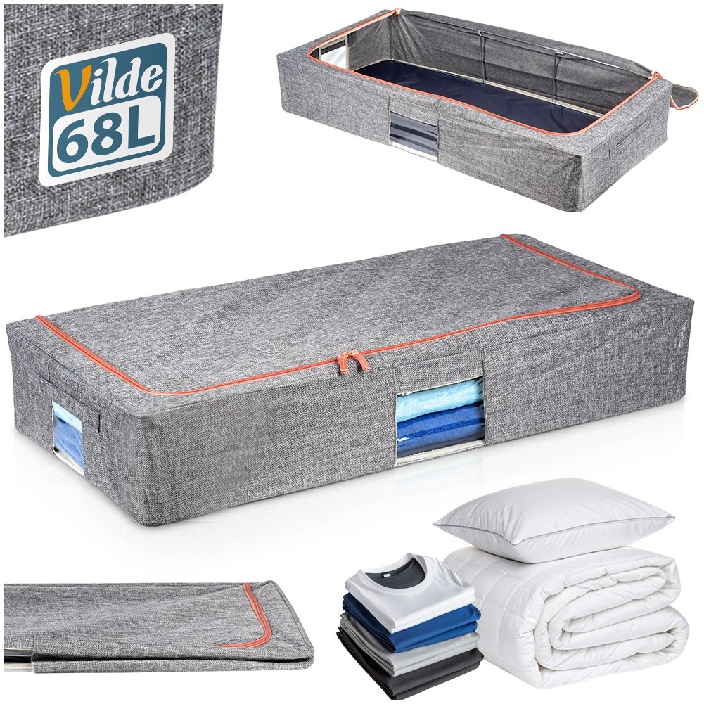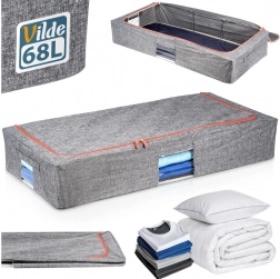 Praktický úložný vak s objemom 68 l na vankúše, prikrývky, obliečky aj oblečenie. Chráni pred prachom, vlhkosťou a moľami, má pevnú textilnú konštrukciu so stabilizačným rámom, dvojitý zips pre ľahký prístup, priehľadné okienko pre rýchly náhľad a bočné úchyty pre pohodlné prenášanie. Ideálny do skrine aj pod posteľ.