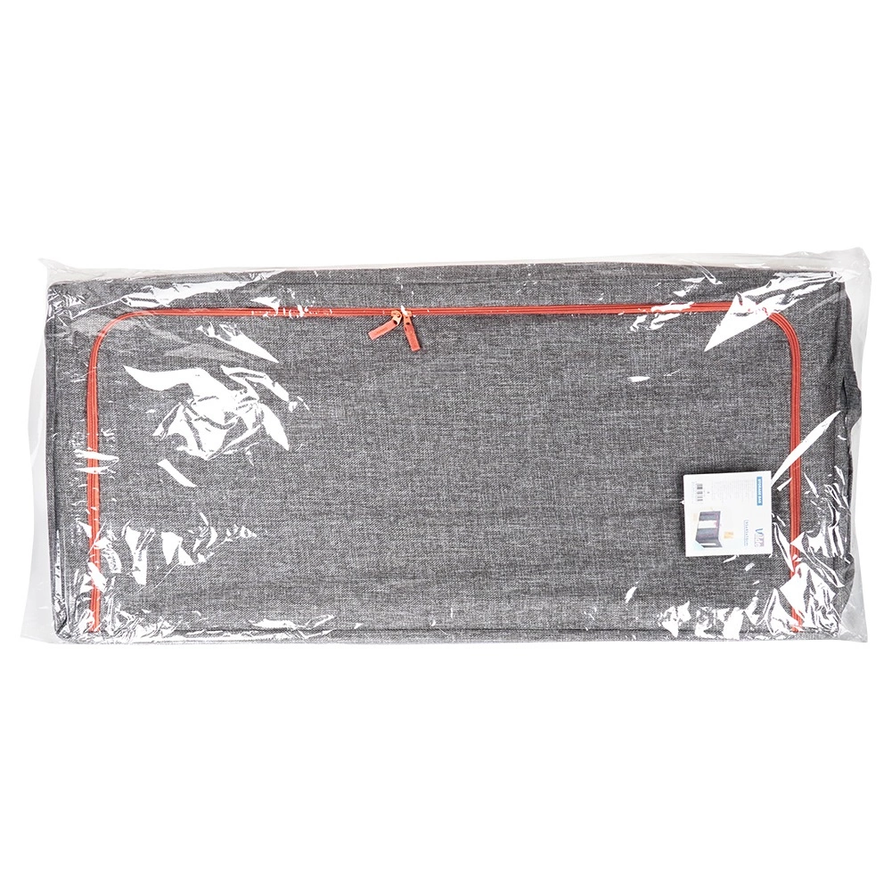 Udržte doma poriadok a ušetrite miesto s priestranným úložným vakom s rozmermi 95 × 45 × 16 cm. Odolná polyesterová tkanina v sivom melíre s kontrastným zipsom spoľahlivo ochráni textílie pred prachom, vlhkosťou a škodcami, zatiaľ čo priehľadné okienko vám umožní ihneď skontrolovať obsah bez otvárania.