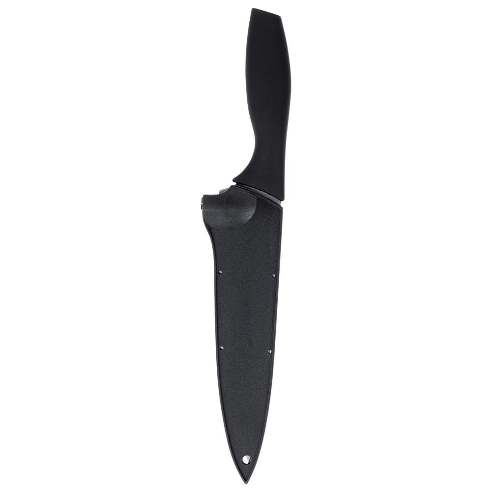 Pevná plastová ochrana chráni ostrie pred poškodením a vás pred náhodným poranením pri ukladaní alebo prenášaní noža.