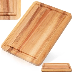 Praktická drevená doska z akáciového dreva s rozmermi 28 × 20 cm a hrúbkou 1,5 cm je ideálna na každodenné používanie v kuchyni. Vďaka hlbokej drážke na šťavy udrží pracovnú plochu čistú, je odolná voči vlhkosti, pevná a stabilná a skvele sa hodí na krájanie aj štýlové servírovanie syrov, údenín a zeleniny.