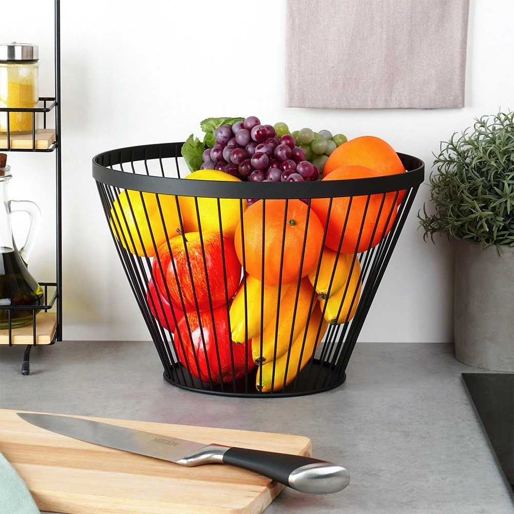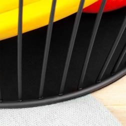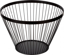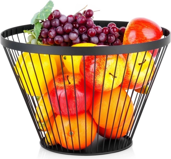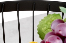 Kovový košík na ovocie Misty je ideálnou voľbou pre každú kuchyňu aj jedáleň. Je vyrobený z kvalitného kovu s práškovou povrchovou úpravou v čiernej farbe, ktorá je odolná a ľahko sa udržiava. Vysoké, rozšírené steny pojmú bohatú zásobu ovocia či zeleniny a vďaka vzdušnému drôtenému tvaru zostane obsah dlhšie svieži.
