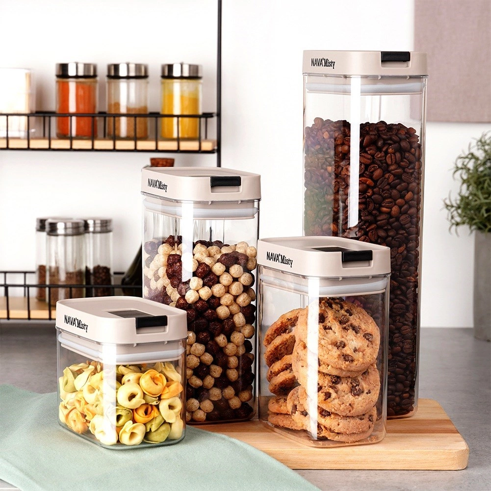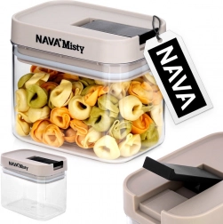 Vďaka odolnému plastu bez BPA je nádobka zdravotne nezávadná a vhodná na každodenné používanie. Skvele sa hodí na kávu, cestoviny, orechy, cereálie, sušené huby, sladkosti a vďaka tesnému viečku aj na tekutiny, ako sú polievky, omáčky či marinády.
