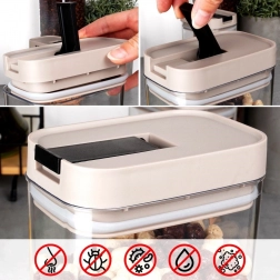 Pákový mechanizmus s tesniacou gumou zabraňuje prístupu vzduchu a vlhkosti, čo udrží potraviny chrumkavé, voňavé a chránené pred škodcami.