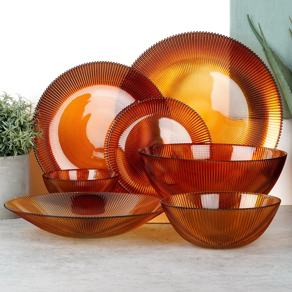 Teplý tón skla a lesklý povrch dodajú stolovaniu elegantný nádych, ktorý vynikne pri každej príležitosti.
