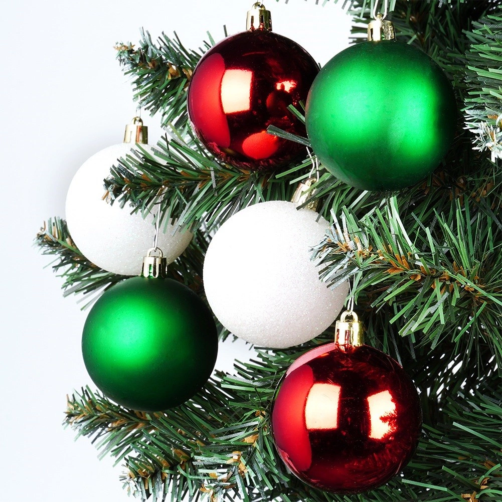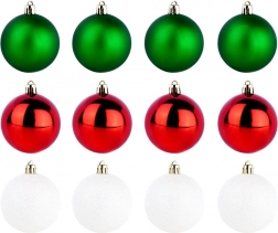 Oblečte svoj stromček do klasických sviatočných farieb. Táto sada obsahuje 12 kusov gulí s priemerom 6 cm: 4× červené lesklé, 4× zelené matné a 4× biele trblietavé. Vďaka kombinácii povrchov vytvára dekorácia hĺbku, kontrast a eleganciu, ktorá sa hodí do moderných aj tradičných interiérov.