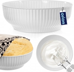Táto univerzálna biela misa je skvelá na miesenie cesta, miešanie, mixovanie aj šľahanie. Vďaka priestrannému objemu 5 litrov sa hodí aj na servírovanie šalátov, zeleninových zmesí, ovocia, snackov, chipsov či popcornu. Nadčasový dizajn so štruktúrou rebrovania krásne doplní každú jedálenskú súpravu.