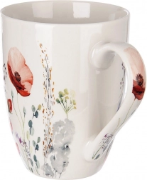Tento štýlový hrnček z kvalitného porcelánu s jemným dekorom poľných kvetov prinesie do vášho stola nádych elegancie. Vďaka objemu 360 ml je perfektný na obľúbené horúce nápoje a vďaka komfortnému uchu sa skvele drží. Nadčasový dizajn sa ľahko kombinuje s akýmkoľvek stolovým vybavením.