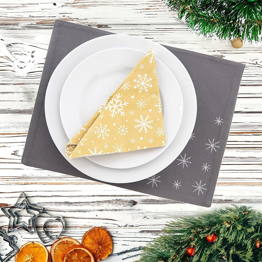 - Štýlový zimný dizajn: decentné vločky na sivom podklade pre sviatočné aj každodenné stolovanie.