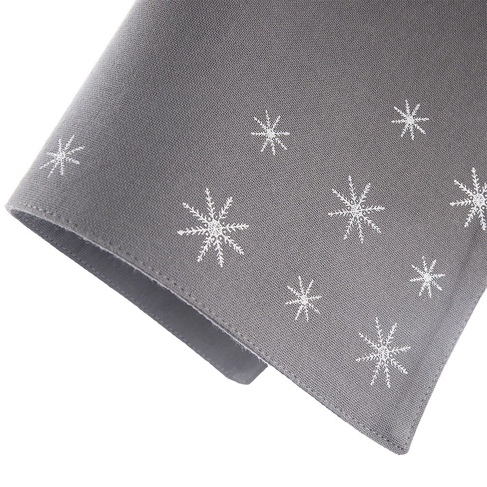 Vytvorte si doma hrejivú zimnú a vianočnú atmosféru. Sivá bavlnená prestierka s jemnou výšivkou snehových vločiek vynikne pri každodennom aj sviatočnom stolovaní. Kvalitná 100 % bavlna je príjemná na dotyk, odolná a skvele ladí s rôznymi štýlmi interiéru.