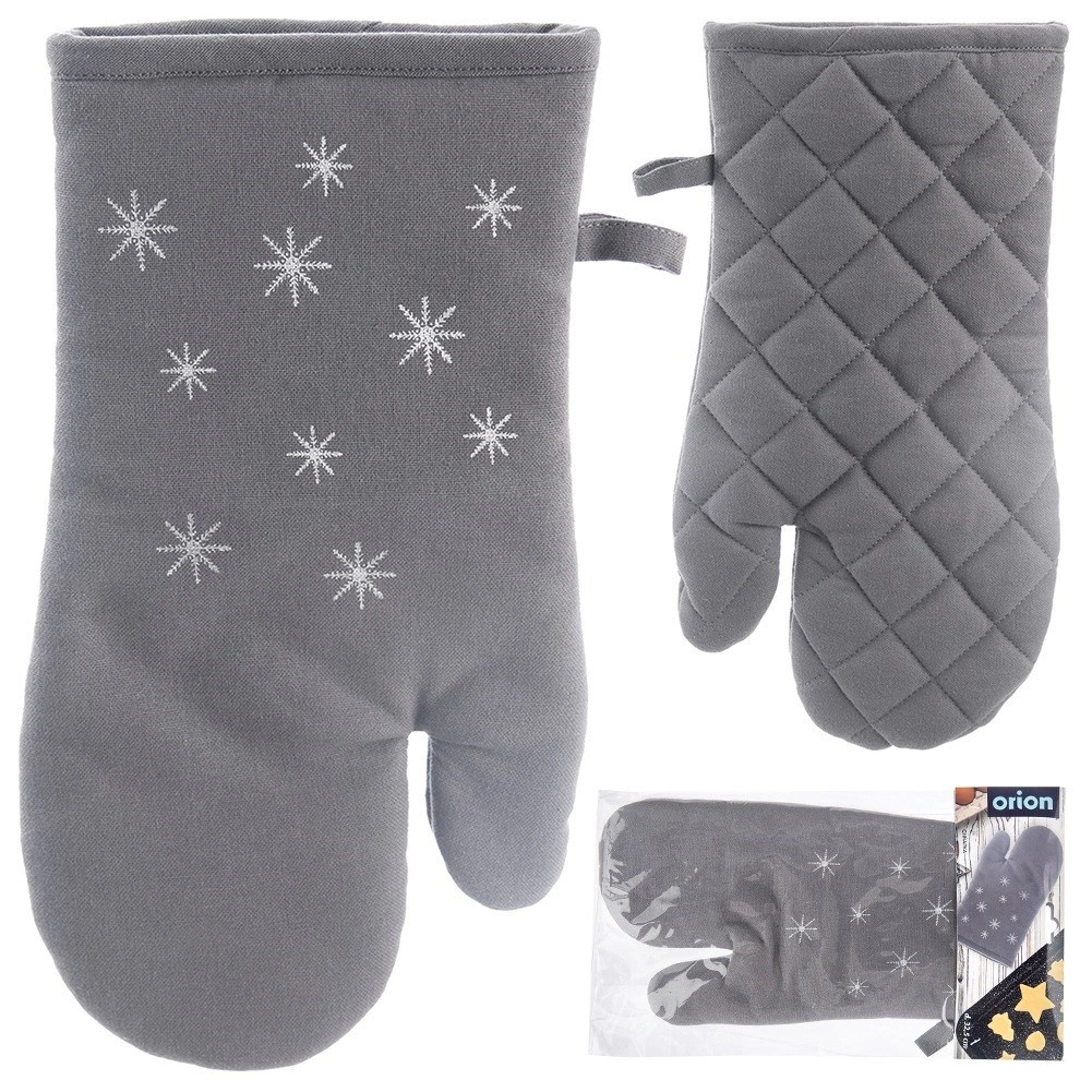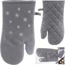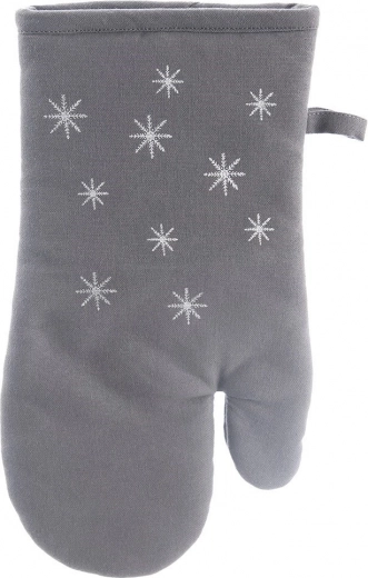 Táto bavlnená kuchynská rukavica v sivej farbe s jemným motívom snehových vločiek je skvelá na každodenné používanie. Poskytuje účinnú ochranu pred vysokou teplotou pri manipulácii s horúcim riadom a plechmi. Univerzálny rozmer 17 × 32,5 cm zaistí pohodlné nosenie na obe ruky.