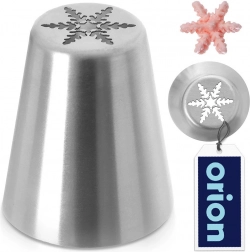 Vytvárajte dokonale prepracované zimné dekorácie s touto ruskou cukrárskou špičkou v tvare snehovej vločky. Odolná nehrdzavejúca oceľ, kompatibilita so všetkými cukrárskymi vreckami a jednoduché čistenie v umývačke z nej robia ideálnu voľbu na zdobenie tort, koláčov aj cupcakes.
