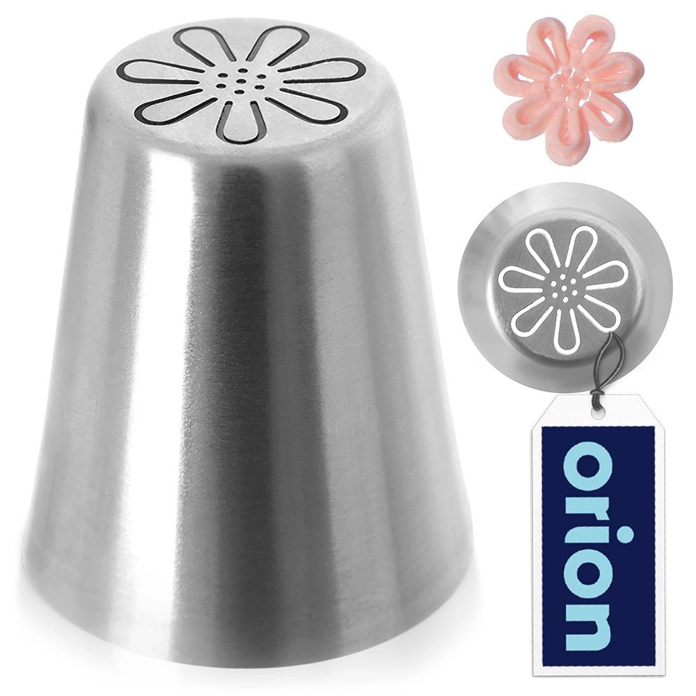Objavte rýchle a pôsobivé zdobenie s ruskou špičkou v tvare kvetu. Špeciálny výrez vytvorí plastické okvetné lístky na jedno stlačenie, takže ľahko ozdobíte torty, cupcakes či zákusky aj bez dlhej praxe. Špička je vyrobená z kvalitnej nehrdzavejúcej ocele, je zdravotne nezávadná a odolná voči korózii.