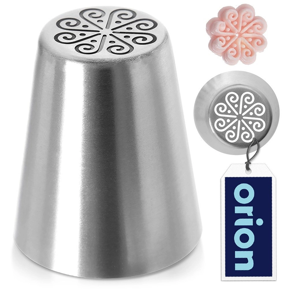 Táto ruská špička s kvetinovým otvorom vám umožní behom chvíľky vykúzliť nádherné kvety z maslového či bielkového krému. Je ideálna na zdobenie tort, koláčov aj malých dezertov. Pevná nehrdzavejúca oceľ zaručuje dlhú životnosť, jednoduché čistenie a bezpečný kontakt s potravinami.
