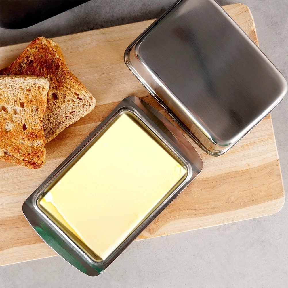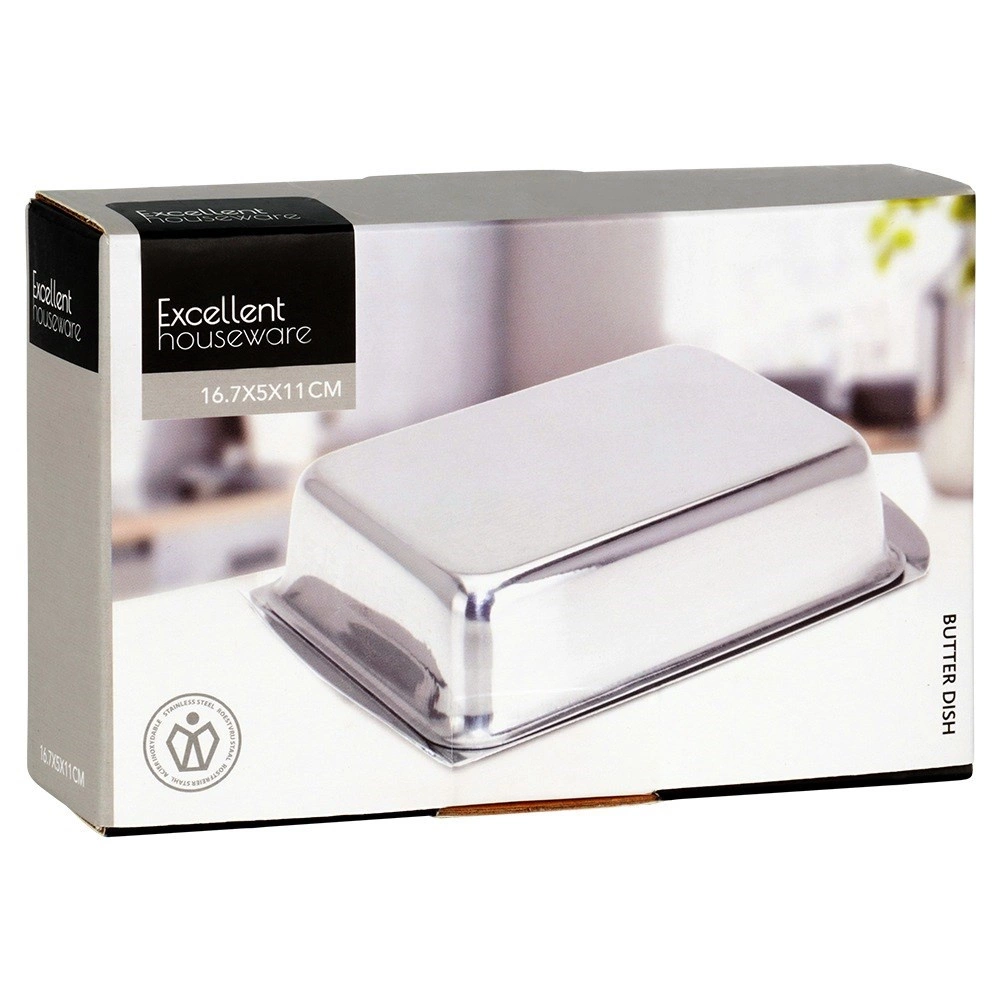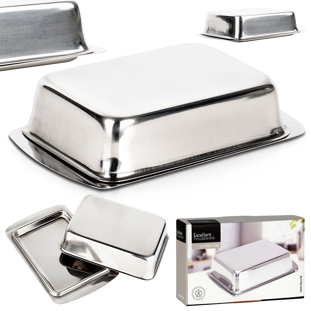 Táto nerezová maslenka je ideálna na každodenné použitie – od chladničky až po slávnostne prestretý stôl. Kompaktné rozmery 16,5 × 10 × 4 cm šetria miesto, zatiaľ čo pevná konštrukcia z kvalitnej nehrdzavejúcej ocele zaisťuje dlhú životnosť. Leštený povrch dodáva moderný vzhľad a ľahko sa čistí.