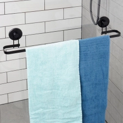 Tento minimalistický držiak na uteráky v matnej čiernej farbe kombinuje čistý dizajn a každodennú funkčnosť. Vďaka dvom veľkým prísavkám ho jednoducho a rýchlo pripevníte na hladké povrchy, ako je sklo alebo obklady, bez nutnosti vŕtania – vaše steny tak zostanú neporušené.