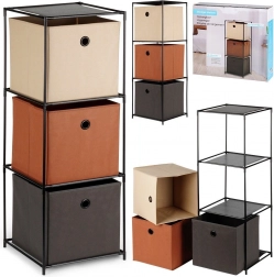 Praktický a elegantný kovový regál s tromi látkovými boxmi ponúka vertikálny úložný priestor na oblečenie, hračky či doplnky. Vďaka stabilnej kovovej konštrukcii a skladacím textilným košom v neutrálnych farbách sa hodí do obývačky, spálne, predsiene aj kancelárie. Kompaktné rozmery šetria miesto a uľahčujú organizáciu domácnosti.
