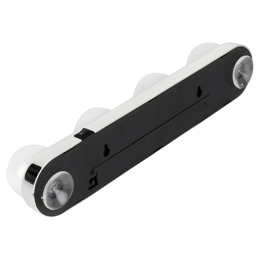 Montáž zvládnete behom chvíľky – dve silné prísavky priľnú k hladkému povrchu bez vŕtania a náradia. Vďaka napájaniu na 3× AA batérie (nie sú súčasťou balenia) je svetlo plne prenosné a môžete ho jednoducho presunúť tam, kde práve potrebujete lepšie osvetlenie.