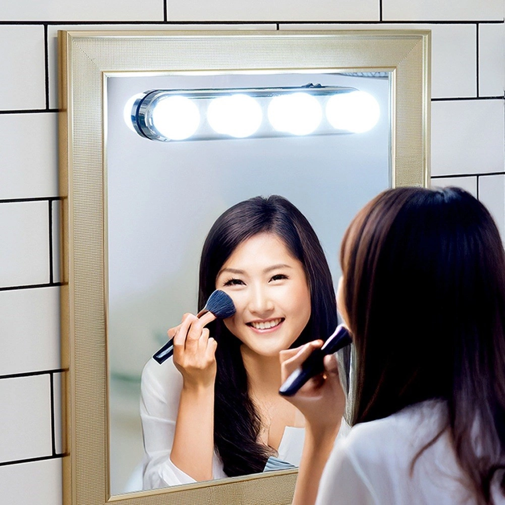 Štyri guľové LED žiarovky poskytujú jasné, rovnomerné osvetlenie bez rušivých tieňov – ideálne na líčenie aj detailnú starostlivosť.