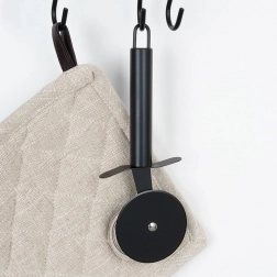 Praktický krájač na pizzu s otočným kolieskom na rýchle a čisté krájanie. Vyrobený z odolnej nehrdzavejúcej ocele s matnou čiernou povrchovou úpravou, ponúka ostrý a presný rez, ergonomickú rukoväť a možnosť zavesenia. Vhodný do umývačky riadu.