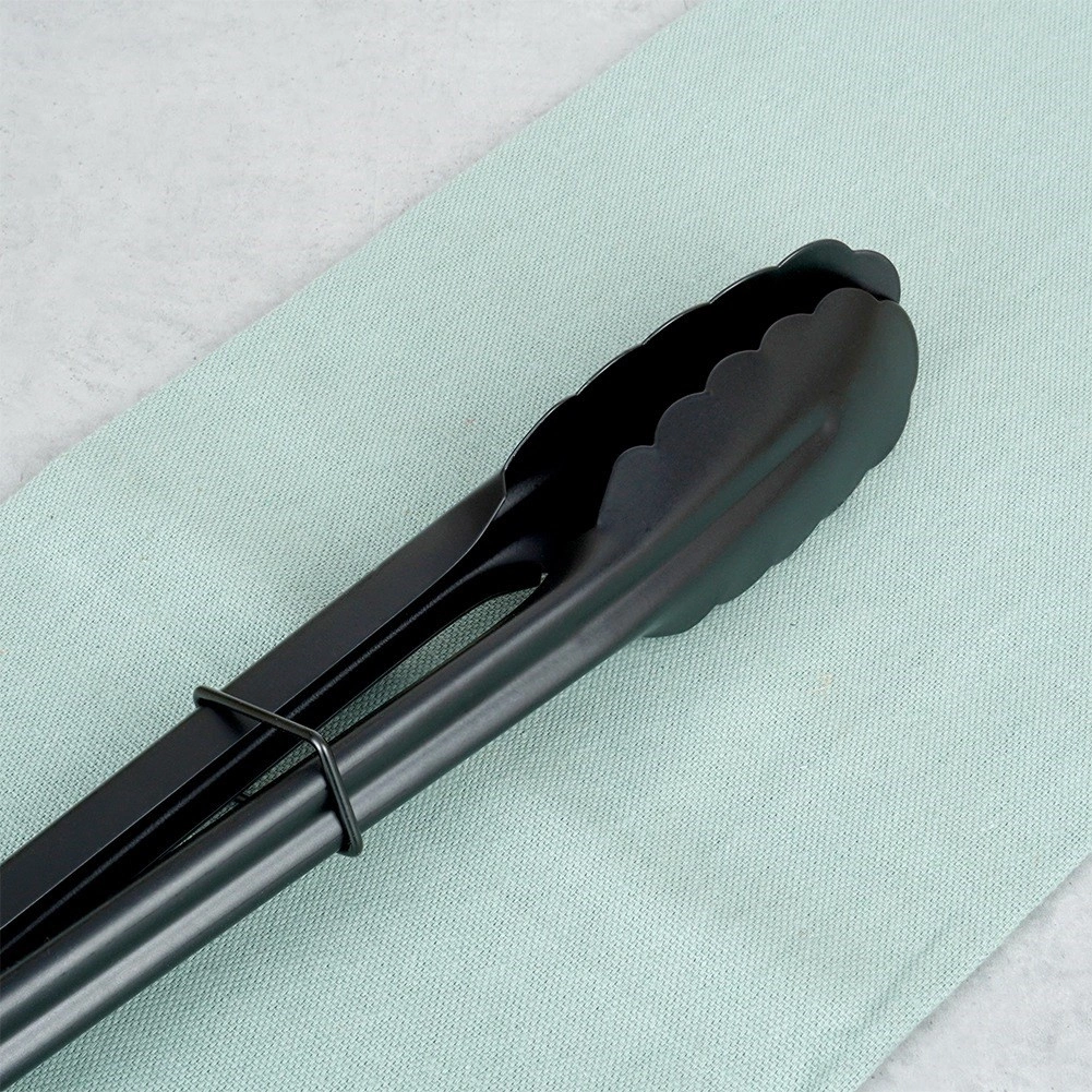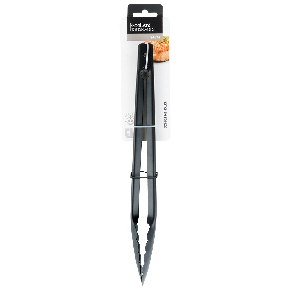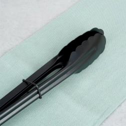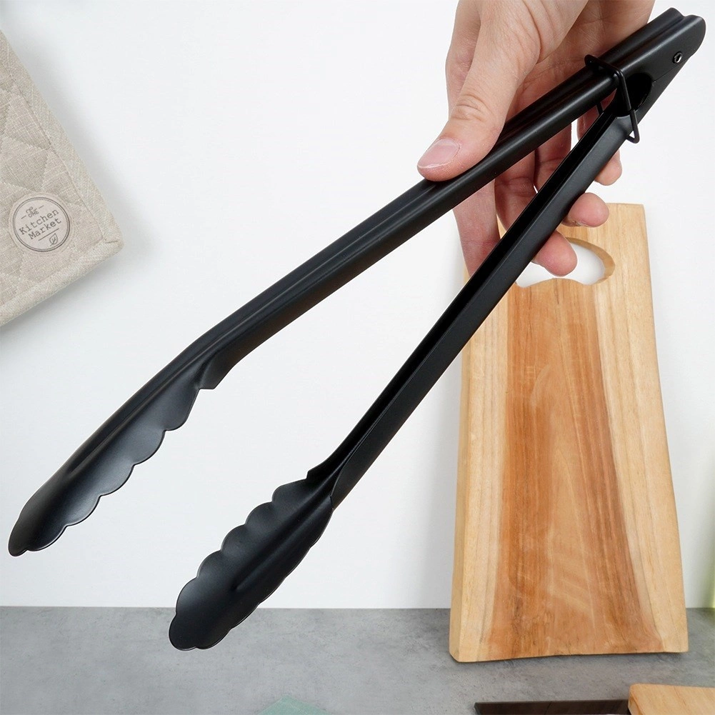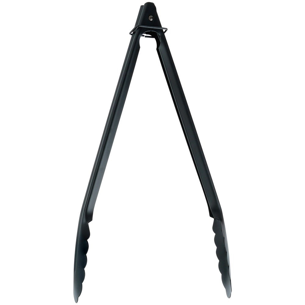 Praktické kuchynské kliešte s dĺžkou 31 cm na každodenné varenie aj grilovanie. Vďaka nehrdzavejúcej oceli s čiernym povrchom, zúbkovaným čeľustiam pre istý úchop a bezpečnostnej zarážke zvládnu ľahké obracanie, servírovanie aj manipuláciu s horúcimi potravinami. Sú vhodné do umývačky a možno ich zavesiť na reling pre úsporné uloženie.