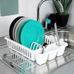 Odolná plastová konštrukcia je ľahká, hygienická a ľahko umývateľná. Nadčasový dizajn sa hodí do moderných aj tradičných kuchýň a zabezpečí rýchly prietok vzduchu pre rýchlejšie sušenie bez mokrých stôp na pracovnej doske.