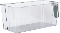 Praktický priesvitný organizér do chladničky s rozmermi 30 × 13 × 11,5 cm pomôže udržať poriadok v chladničke a mať potraviny vždy poruke. Vďaka integrovanému úchytu sa ľahko vysúva z políc, je odolný, bezpečný pre potraviny a umožňuje rýchlu vizuálnu kontrolu obsahu.