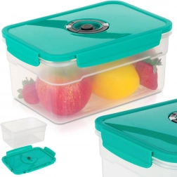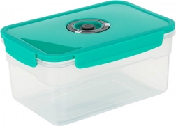 Udržte svoje potraviny dlhšie čerstvé s vákuovou dózou s objemom 2,3 l a rozmermi 23 × 16 × 11 cm. Vďaka integrovanému ventilu vo veku ľahko odsajete vzduch (pomocou ručnej pumpičky) a minimalizujete oxidáciu aj stratu chuti. Priehľadné telo uľahčí kontrolu obsahu, tyrkysové veko so štyrmi klipmi zaistí spoľahlivé a tesné uzavretie.