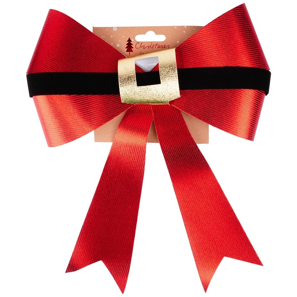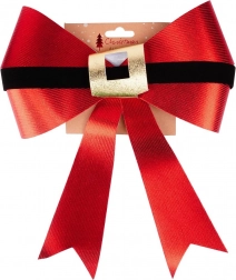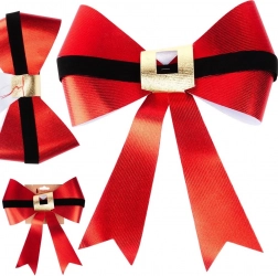 Vytvorte doma aj v práci kúzelnú sviatočnú atmosféru. Táto veľká vianočná mašla v lesklej červenej farbe s čiernym „pásom“ a zlatou sponou pripomína Santov opasok, takže okamžite zaujme a zvýrazní každý interiér aj exteriér.