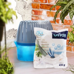 Štandardný tabletový formát 450 g je vhodný pre väčšinu pohlcovačov vlhkosti s vymeniteľnou tabletou. Výmena je rýchla, čistá a bez náradia.