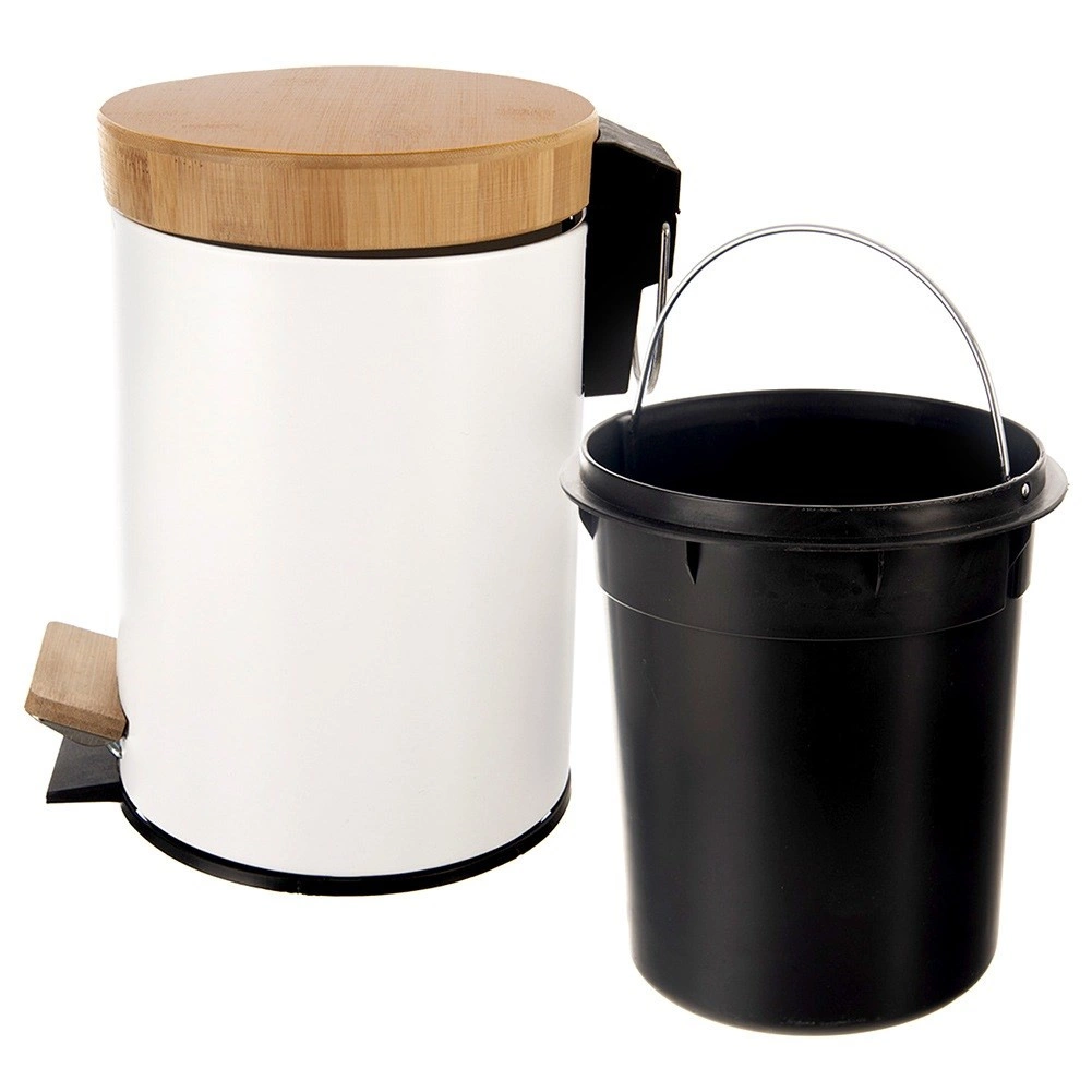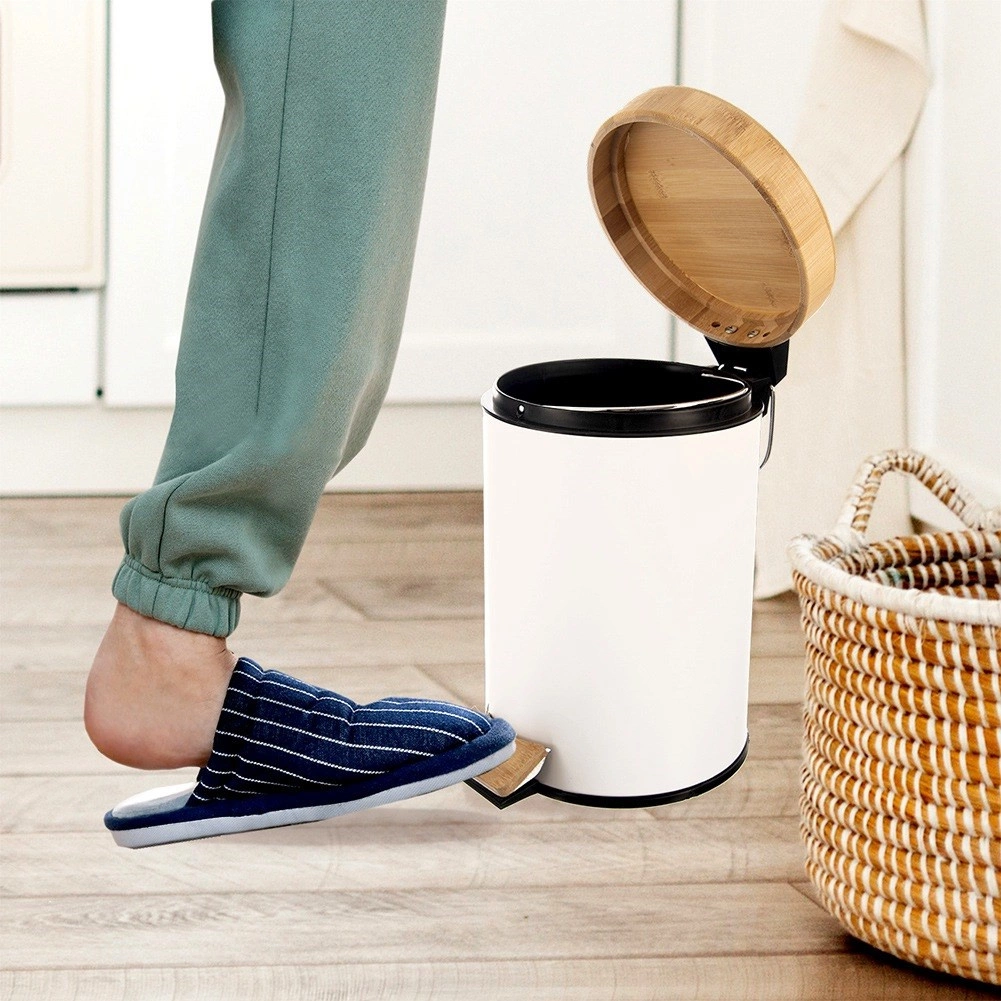 Kompaktný odpadkový kôš s objemom 3 l v elegantnom bielom prevedení s bambusovým vekom a pedálom sa skvele hodí do kúpeľne, kancelárie či spálne. Tiché a hygienické otváranie nožným pedálom, vyberateľná vnútorná vložka pre jednoduché vysýpanie a moderný minimalistický dizajn do každého prostredia.