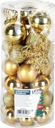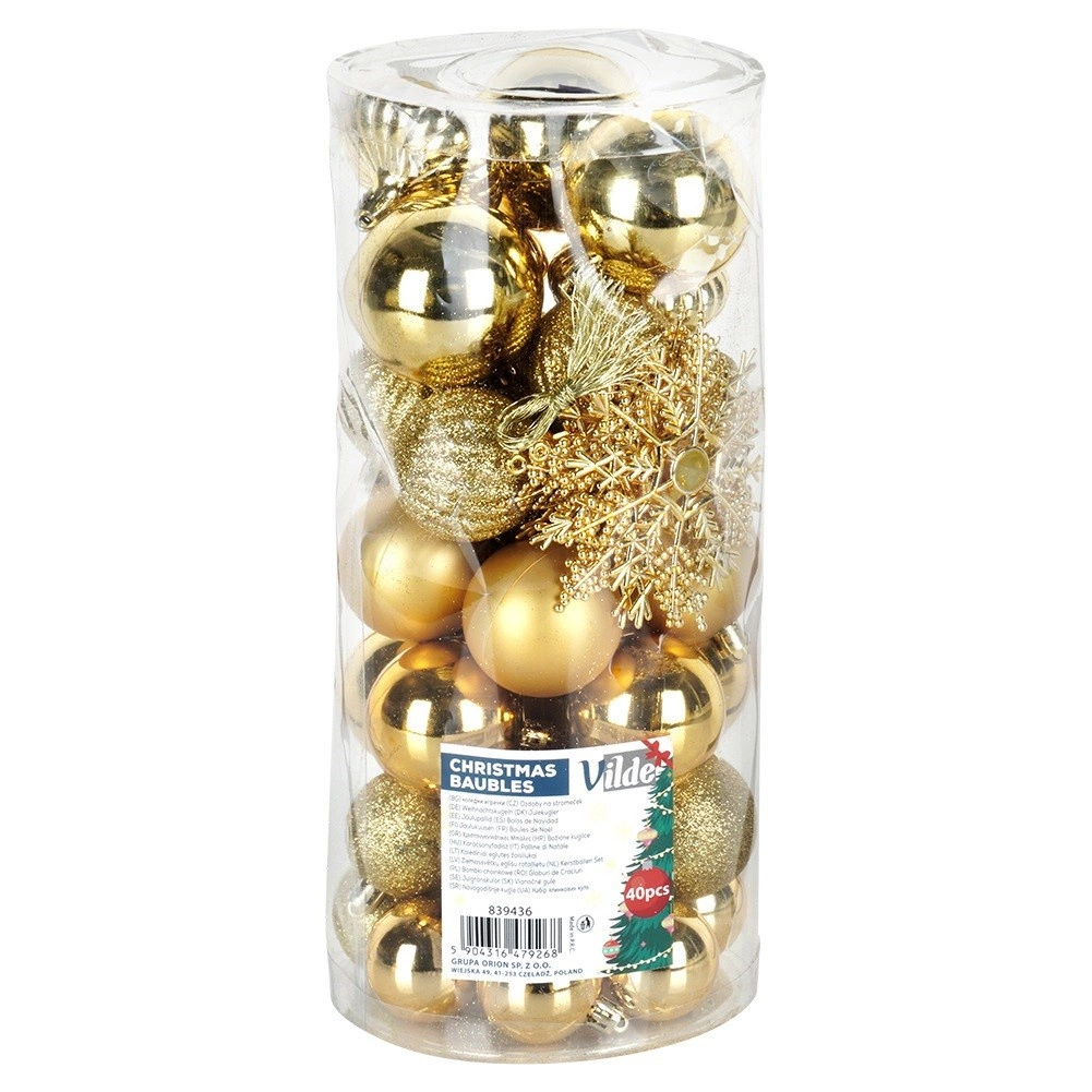 Vytvorte si doma jedinečnú vianočnú atmosféru so sadou zlatých ozdôb Vilde. Guľôčky sú vyrobené z kvalitného plastu, takže sú neroztříštiteľné a výrazne odolnejšie než sklenené, pričom si zachovávajú elegantný vzhľad skla. Rôzne povrchové úpravy v jednej farbe umožnia harmonické a zároveň dynamické zdobenie stromčeka, vencov či girland.