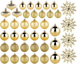 Balíček zahŕňa 40 gúľ (4, 5 a 6 cm) a 4 snehové vločky 10 cm, vrátane šnúrok na ľahké zavesenie.