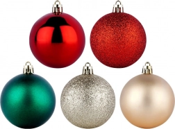 V balení nájdete starostlivo zladené kombinácie na jednoduché zdobenie: červené matné a lesklé, šampanské matné a trblietavé a zelené matné gule. Vďaka jednotnému priemeru 6 cm sa skvele kombinujú a vyplnia stromček od špičky po spodné vetvy.
