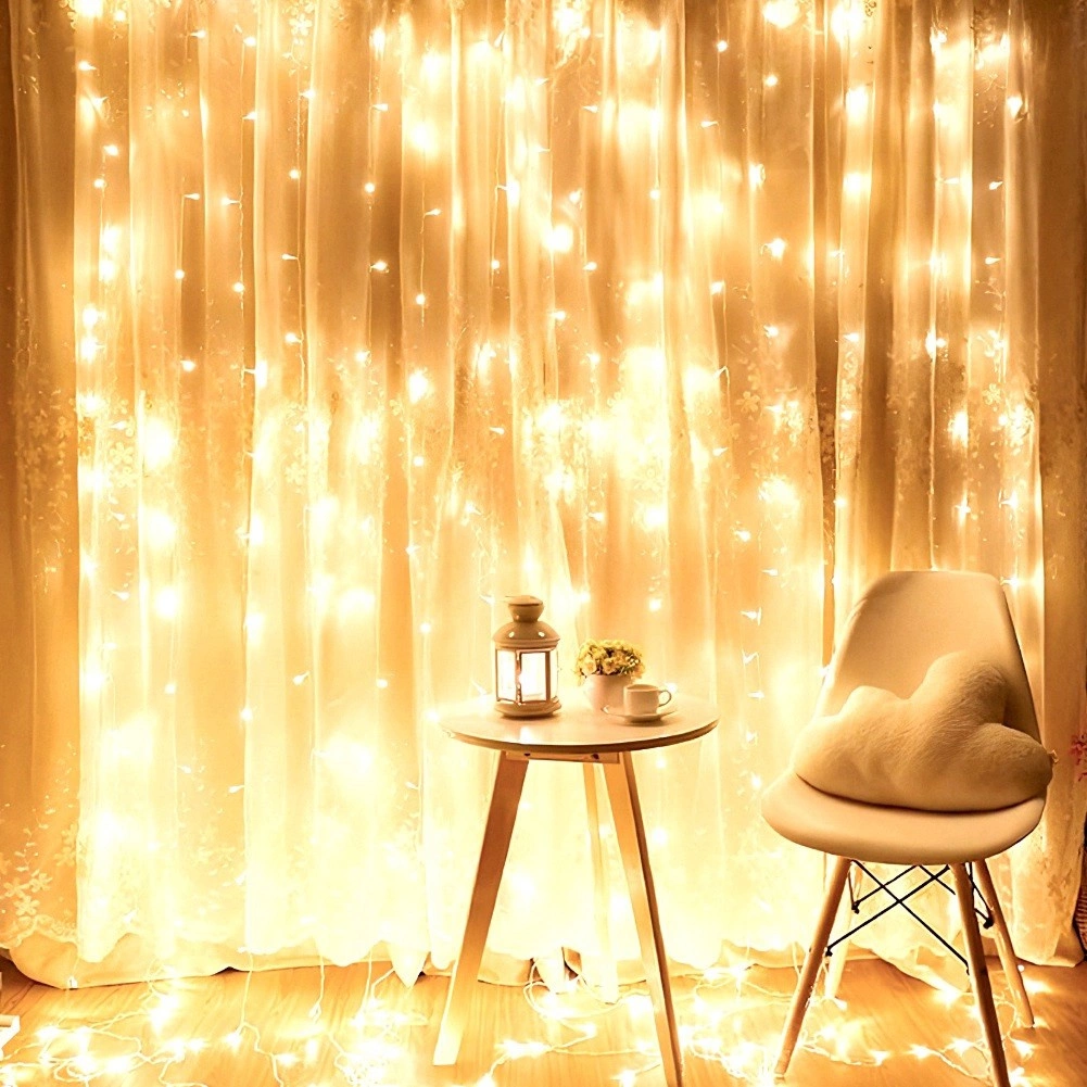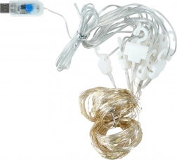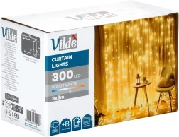 Štýlová LED svetelná záclona premení každé okno či stenu na útulnú svetelnú kulisu. Transparentné vodiče s 300 LED v teplej bielej farbe vytvárajú príjemné, dekoratívne osvetlenie pre interiér. Vďaka rozmeru 3 × 3 m rovnomerne pokryje väčšiu plochu a skvele sa hodí do obývacej izby, spálne aj na sviatočnú výzdobu.