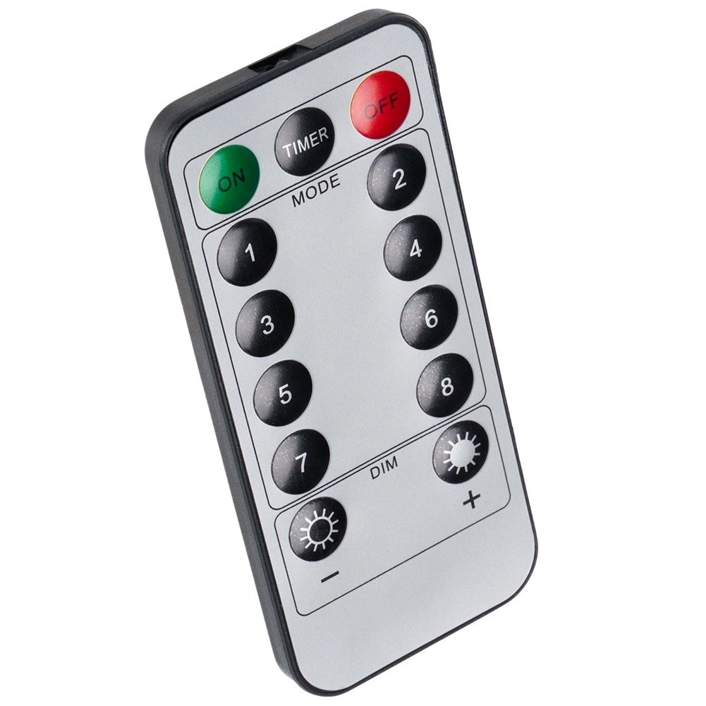 Diaľkový ovládač umožňuje zapnutie/vypnutie, voľbu 8 režimov, reguláciu jasu a aktiváciu časovača – všetko z pohodlia gauča.