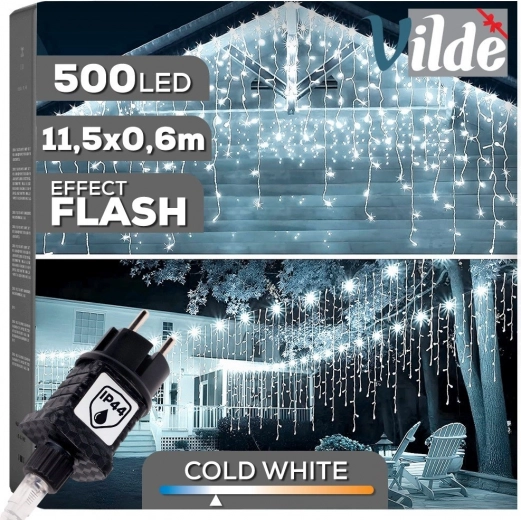 Štýlová svetelná opona s 500 úspornými LED vyčarí okúzľujúcu sviatočnú dekoráciu na fasáde, pergole či v interiéri. Priehľadné vodiče a rôzna dĺžka visiacich vetiev (35, 40, 45 a 60 cm) vytvárajú realistický efekt trblietavých cencúľov, niektoré diódy jemne poblikávajú pre ešte pôsobivejší vzhľad.