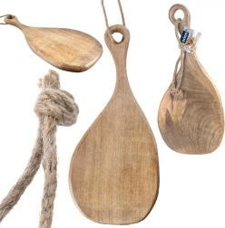 Vďaka ergonomickému úchytu sa doska pohodlne prenáša, otvor so šnúrkou umožňuje jednoduché zavesenie a úsporu miesta. Hladký, jemne brúsený povrch chráni pracovnú dosku pred poškrabaním a zvýrazňuje prírodnú textúru dreva.