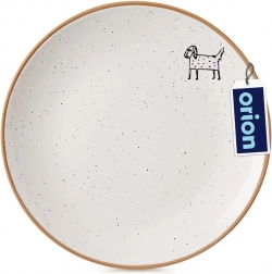 Objavte všestranný dezertný tanier, ktorý skvelo doplní vašu existujúcu jedálenskú súpravu. Pôsobivý béžový odtieň so škvrnitou glazúrou a prírodným lemom dodávajú tanieru moderný vzhľad, ktorý vynikne pri každodennom stolovaní aj slávnostných príležitostiach. Jemné reliéfne zdobenie s motívom psa dodáva originálny šarm.