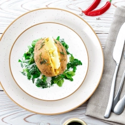 Béžová škvrnitá glazúra a prírodný lem vyniknú na každom stole a ľahko sa kombinujú s ďalšími kúskami riadu.